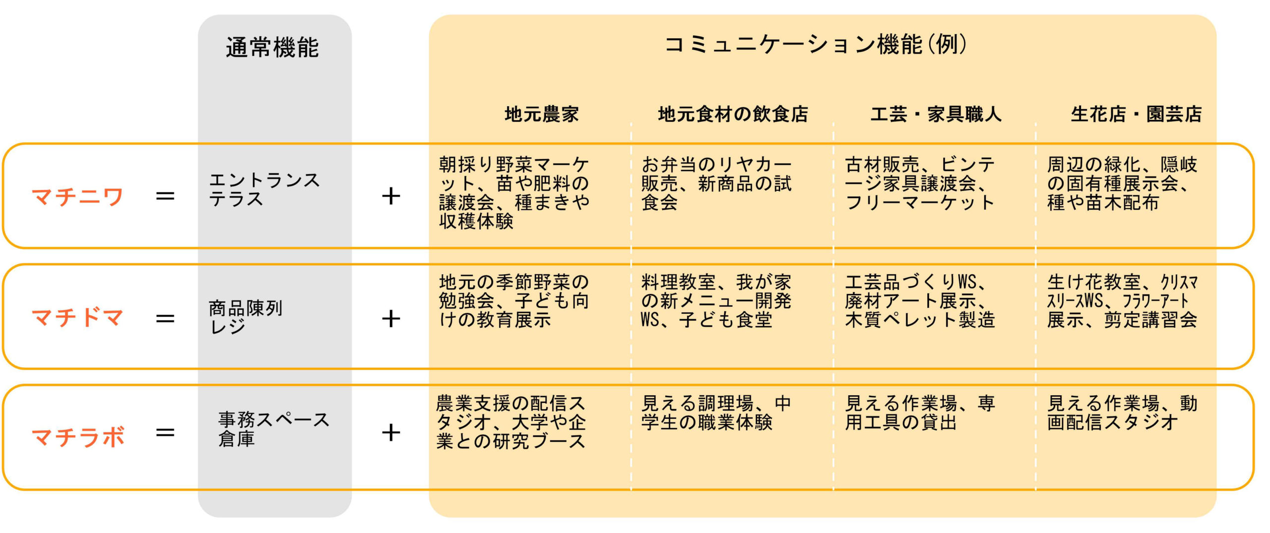 「マチラボ」「マチドマ」「マチニワ」の3空間を通じて、交流や体験を促す商業施設。ものづくりの現場を開き、特産品への理解と愛着を育み、隠岐発の創造的な産業の育成を目指す。